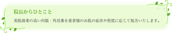 Home >> 診療内容 >> 治療方法・機器別 >> 美肌内服・外用