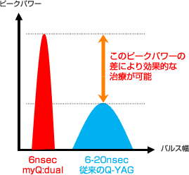 (myQ:dual マイキューデュアル)は極力、熱緩和時間を短く抑え(照射時間6ns(ナノ秒)、 この短い時間に