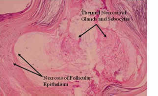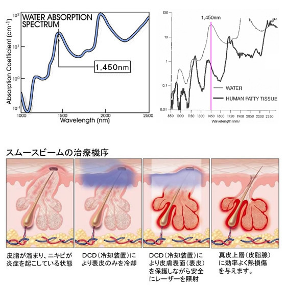 その結果、真皮上層に熱エネルギーを集め、皮脂腺に熱損傷を与えることに